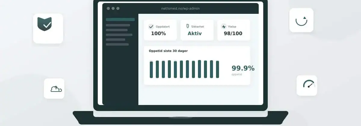 Jevnlig database-vedlikehold, caching-konfigurasjon og responstidovervåking sørger for at nettsiden laster raskt. Hos Nettsmed overvåker vi responstider og griper inn proaktivt når vi ser avvik.
