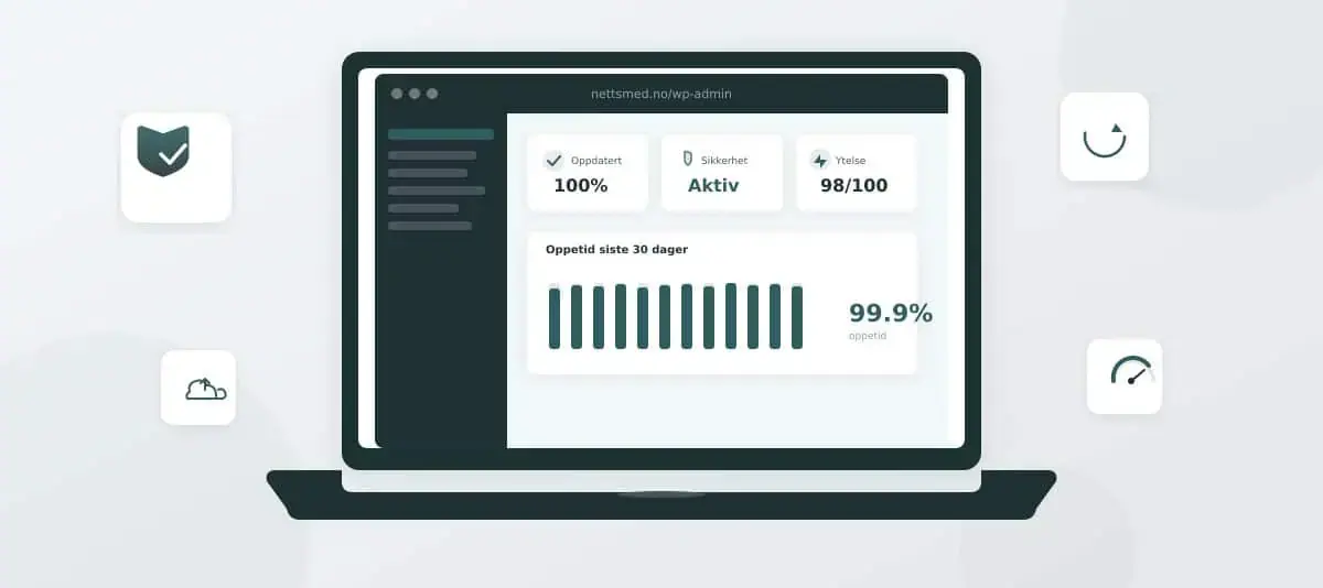 WordPress vedlikehold omfatter oppdateringer, sikkerhet, backup og ytelsesovervåking i én profesjonell driftsavtale